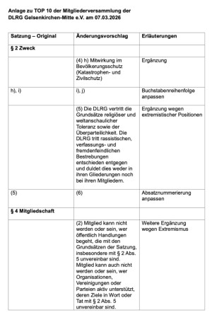 Die Mitwirkung im Bevölkerungsschutz (Katastrophen- und Zivilschutz) wurde ergänzt, ebenso gab es Ergänzungen wegen extremistischer Positionen (s. Anlage).